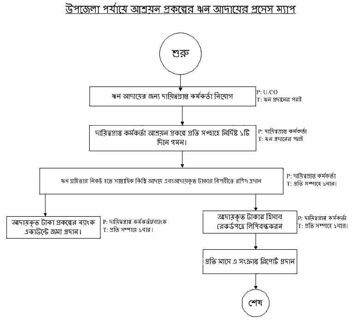 উপজেলা পর্যায়ে আশ্রয়ন প্রকল্প ঋণ আদায়ের প্রসেস ম্যাপ