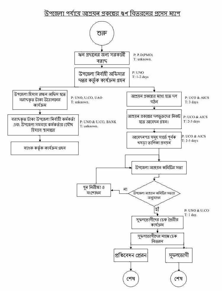 উপজেলা পর্যায়ে আশ্রয়ন প্রকল্প ঋণ বিতরনের প্রসেস ম্যাপ
